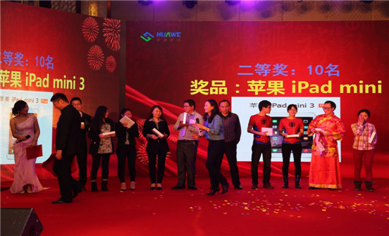 年会表演节目精彩纷呈,无论是开场大鼓、舞蹈、歌曲、小品、还是双簧、哑剧、情景剧,均完美诠释了华威人的才华和个性。激动人心的抽奖活动让所有同事热血沸腾,苹果imacbook、iphone6、ipadmini3等数十个高大上的奖品、欢乐的晚宴、美酒佳肴、觥筹交错... 6个小时的年度盛会让大家一直尖叫不停,惊喜不断。华威人今天所有的付出与努力,都将在我们一路同行中变得更加美好!变得更加值得期待!