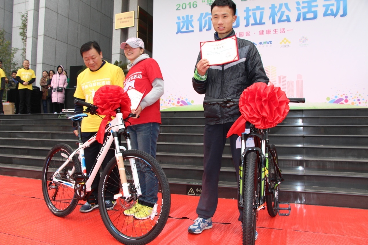 比赛结束后,由各位领导为男女前3名获奖选手颁发奖品。